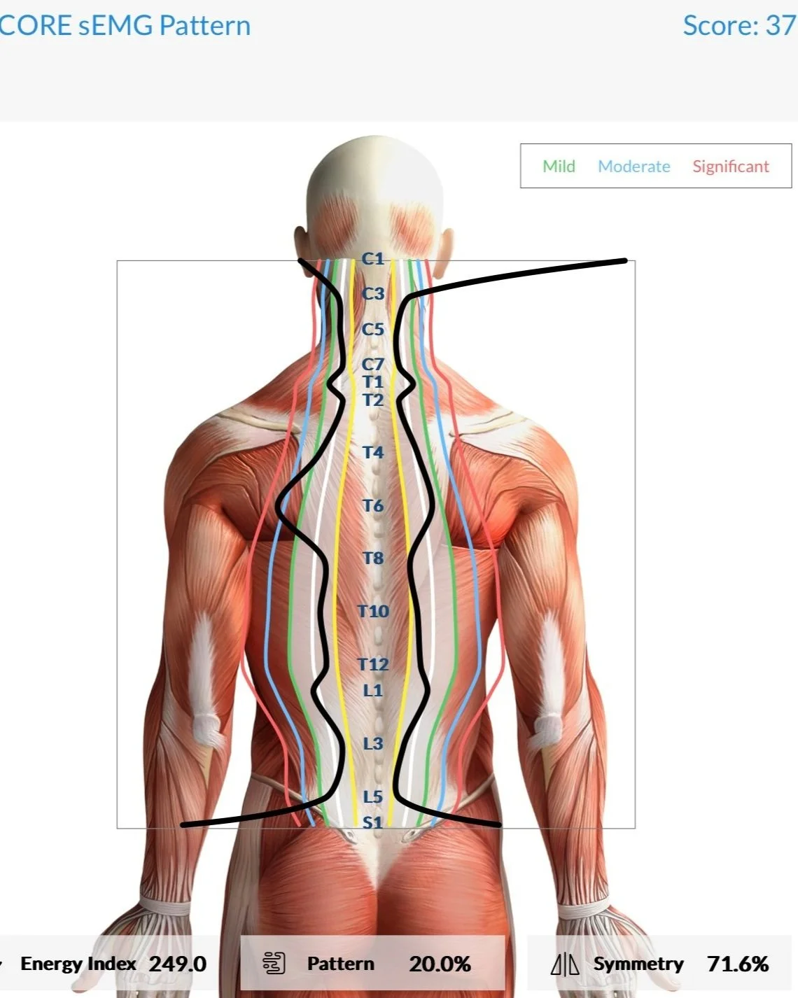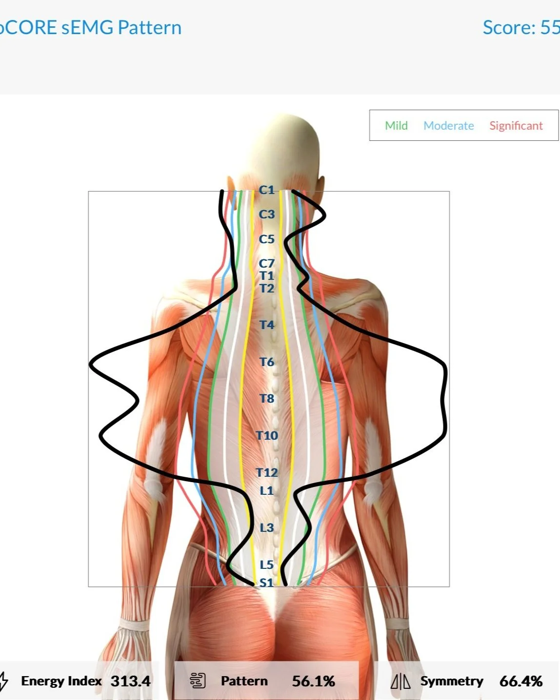 The most exciting thing about Pediatric Chiropractic is that we can see changes in a child’s EMG Scans quickly because their nervous system is still learning to grow and adapt at such a fast pace. Their brains and bodies are growing and developing rapidly; it’s quite incredible. But that also means that when subluxation gets into the neuromuscular system (as shown on EMG), it can wreak havoc and alter their development for years to come. Diving a bit deeper into this particular scan, our INSiGHT EMG Scans also use a 3-step scoring system that allows us to really understand what’s going on with that child’s neuromotor system and, thus, overall brain and neurodevelopment. Here are the 3 scores you’ll see on your child’s EMG Scan and a quick explanation of what they mean, and then we’ve provided some examples of EMG scans as well: Total Energy Score – this score tends to go way up in a child who’s wound up and stuck in sympathetic mode, and therefore a high score here is most often seen with our ‘Raging Bull’ cases struggling with things like anxiety, behavior and sleep issues, and so forthPattern Score – this is a significant score to the overall neurological tone, and a low score here indicates a child who’s likely struggling with emotional dysregulation, focus and concentration challenges, postural exhaustion and a weak core, and so forthSymmetry Score – this score measures the balance between the right and left sides of the neurospinal system, which is crucial to be then sure that there is balance in overall brain function and coordination